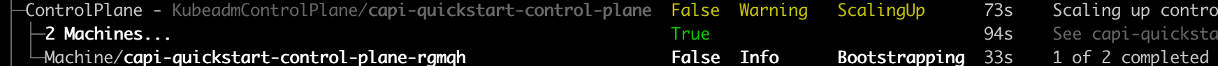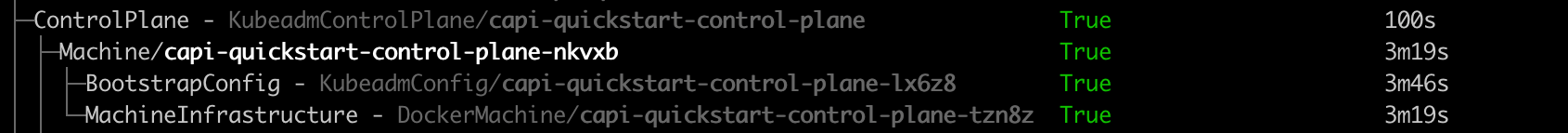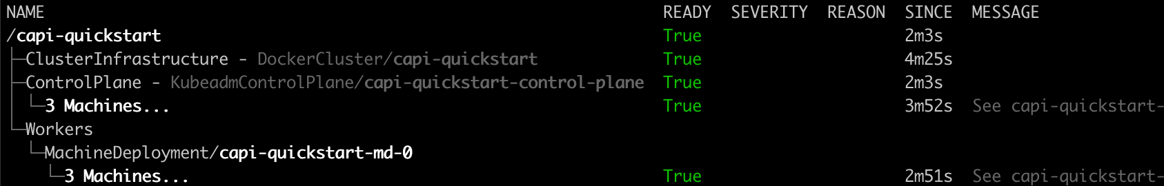 For example clusterctl describe cluster capi-quickstart will provide an output similar to: